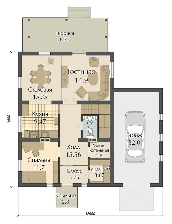 Тип наружных стен: блоки ПГС+утепление мин.плитой