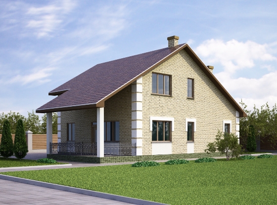 Красивый двухэтажный проект дома, интересный своей планировкой. В нём есть всё для создания уюта и комфорта, одним из главных преимуществ проекта является большая терраса, посидеть и отдохнуть на которой будет приятно.