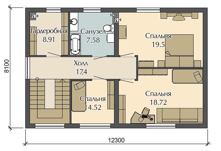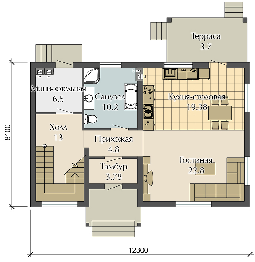 Общая площадь дома: 155.1