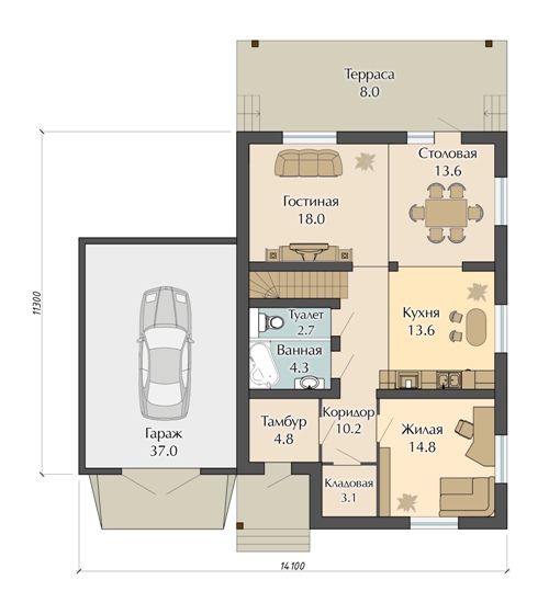 Изначально проект ставил перед собой задачу совместить простоту и привлекательный внешний вид здания, сделать дом, в котором не будет ничего лишнего и, в то же время, хозяева смогут почувствовать себя максимально удобно. Проект получился великолепным, благодаря своей планировке.