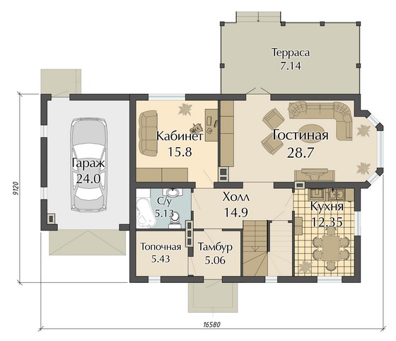 • Общая площадь дома: